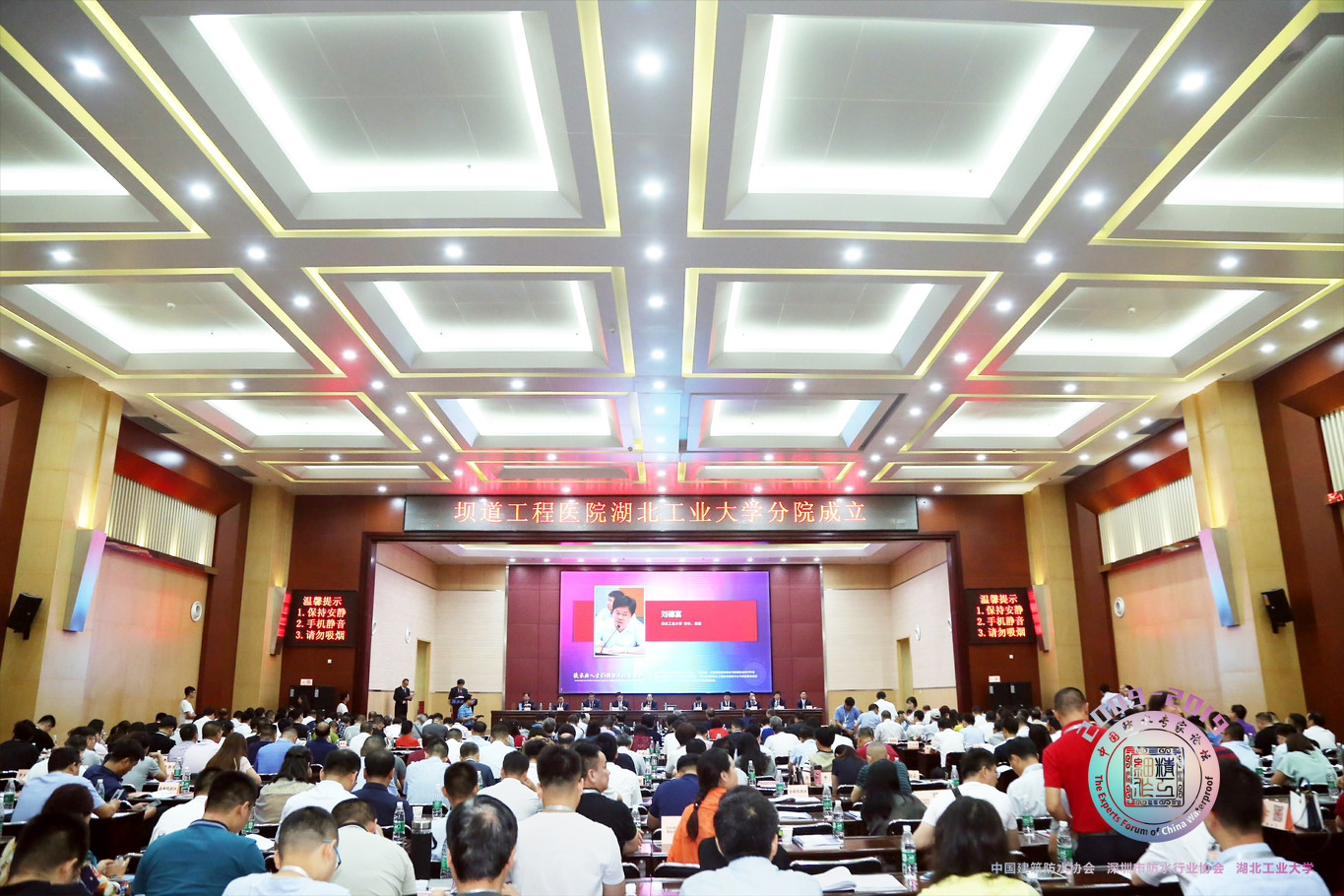鄭州大學教授、中國工程院院士王復明,深圳大學土木與交通工程學院院長、中國工程院院士陳湘生,湖北工業(yè)大學校長劉德富、副校長李冬生,湖北省住房和城鄉(xiāng)建設廳總工程師談華初,深圳市住房和建設局副局長鄭曉生,中國建筑防水協(xié)會秘書長朱冬青,中國建材集團科技部總經(jīng)理郅曉等領導嘉賓,以及中國建筑防水協(xié)會專家委員會專家、深圳市防水行業(yè)協(xié)會專家、湖北省建筑防水工程技術研究中心第一屆專家委員會專家、各省市防水學(協(xié))會會長及秘書長、青年企業(yè)家代表、防水企業(yè)代表、2009“防水材料與工程”專業(yè)畢業(yè)生代表、媒體代表等450人出席大會。